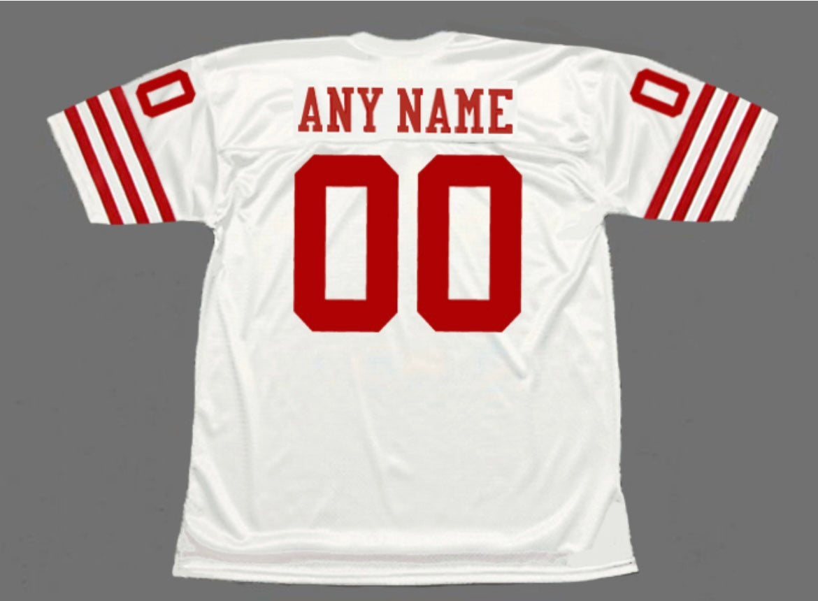 San Francisco 49ers Jersey Mitchell & Ness… you choose your name and number and email us with those details after placing your order. Classicauthentics@gmail.com All numbers and letters are stitched