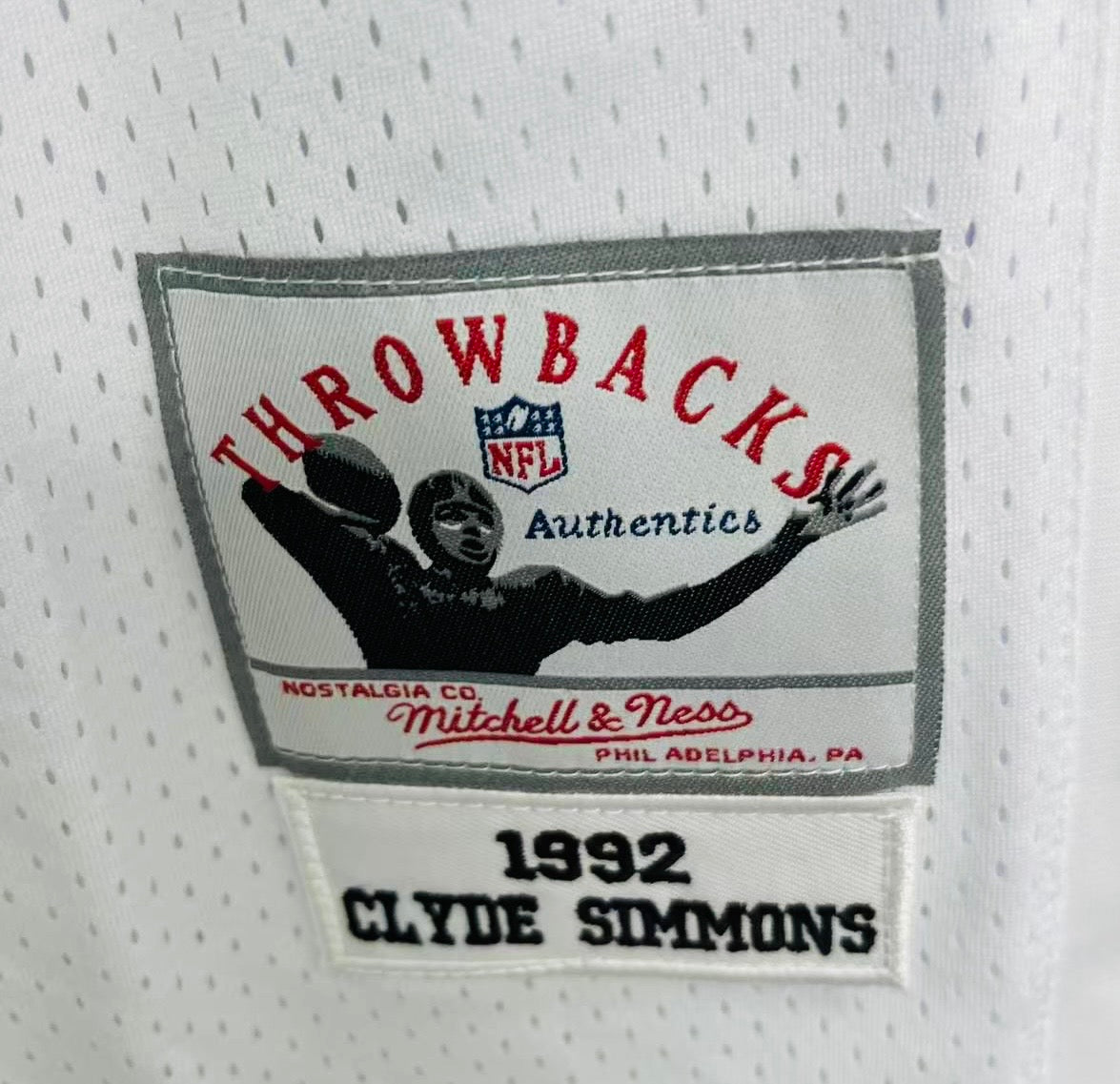 Clyde Simmons 1992 Philadelphia Eagles Jersey with Jerome Brown patch… Made by Mitchell & Ness… All letters and numbers are stitched