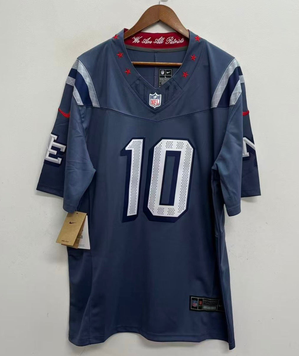 Drake Maye New England Patriots 2025 Rivalries Collection Storm Blue Jersey … Made by Nike … All letters and numbers are stitched