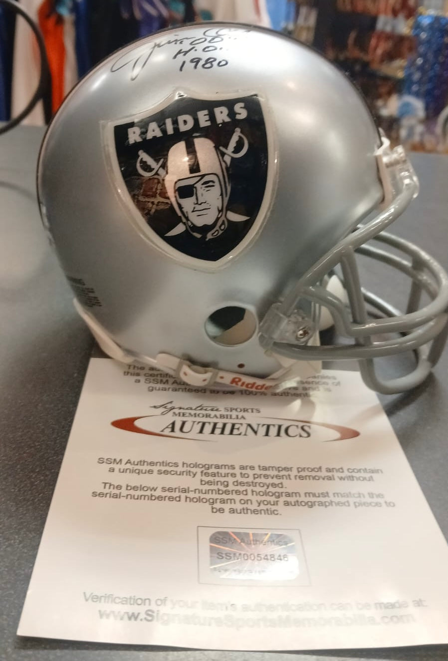 Jim Otto autographed Oakland Raiders mini helmet with COA… This is a hand signed standard size Riddell Mini helmet. This comes in perfect condition (new in the box)