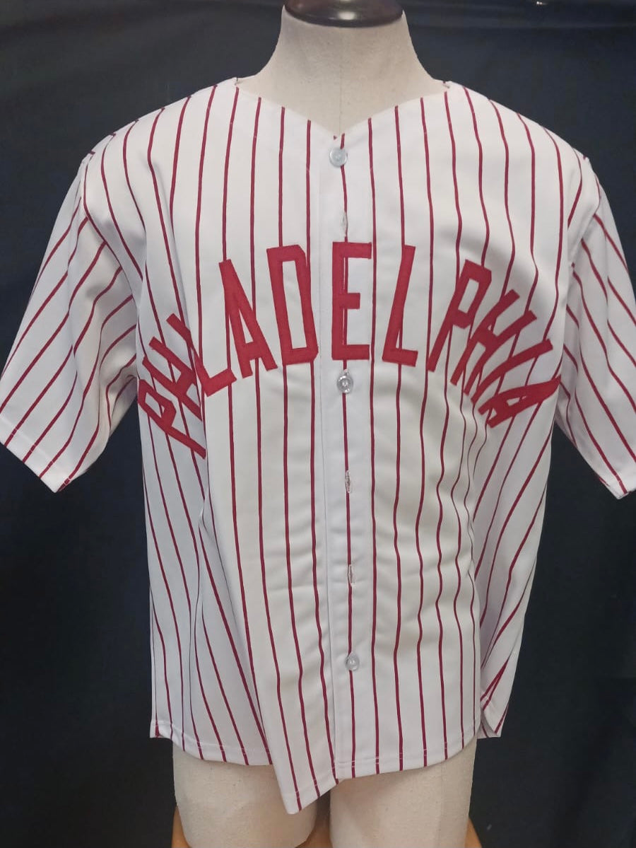 Jimmy Rollins autographed jersey… This jersey is hand signed and comes with authenticity (Beckett Sticker) from Beckett. The jersey is a Custom Men’s size XL. It has stitched on letters and numbers.