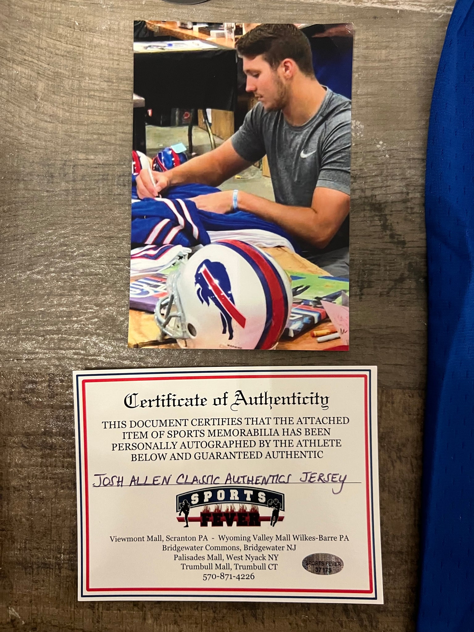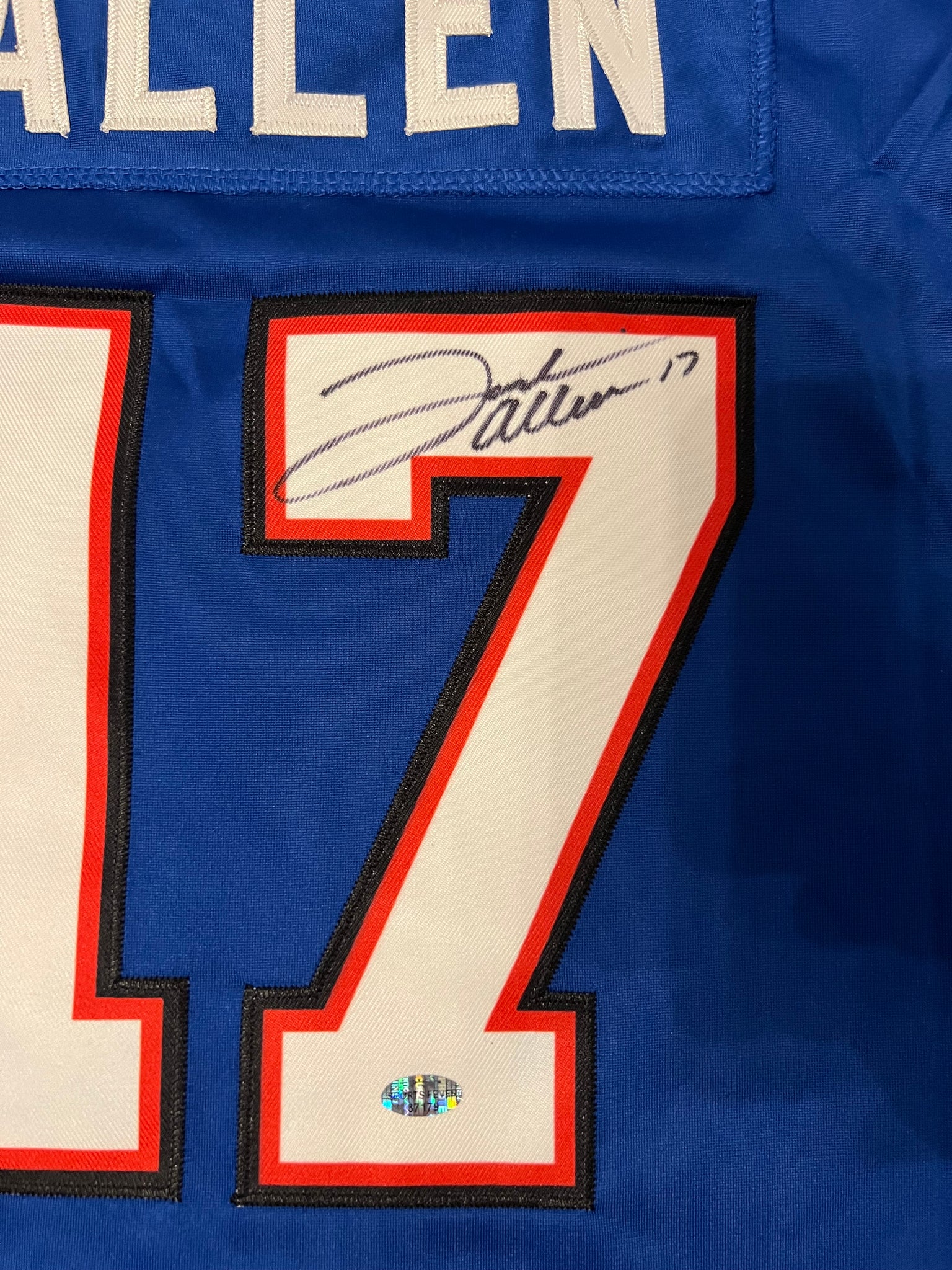 Josh Allen autographed jersey … This jersey is hand signed and comes with a certificate of authenticity from Sports Fever. You will also receive a 4x6 photo of him signing the jersey. The jersey features stitched on letters and numbers made by Classic Authentics… size XL