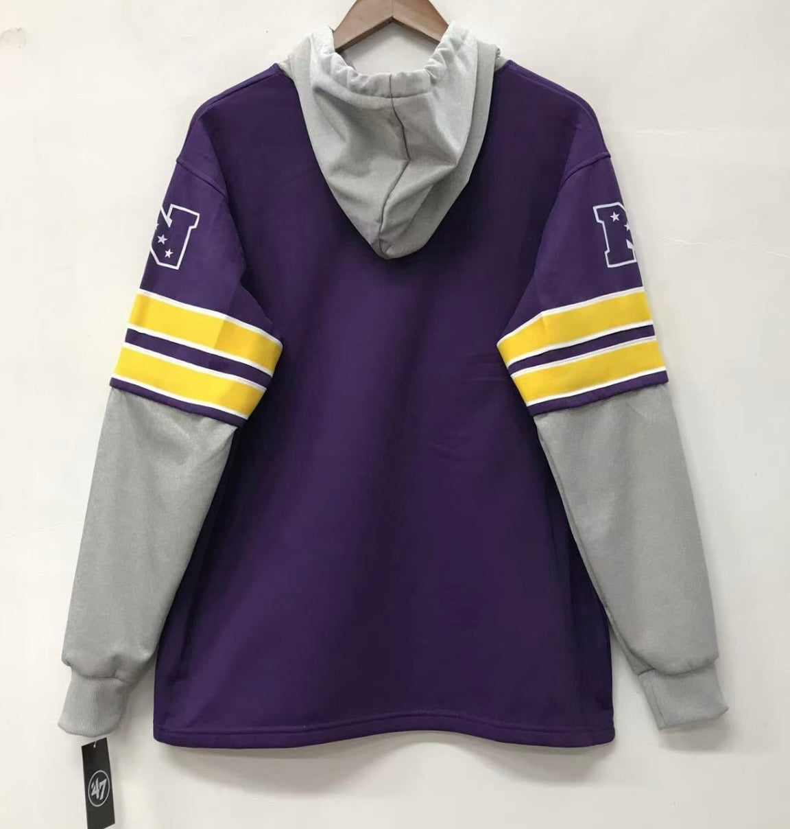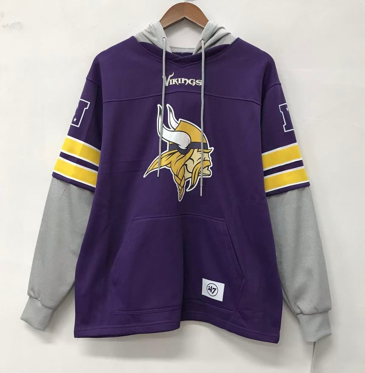 Minnesota Vikings Hoodie… Very thick and premium quality… Made by 47 brand…Layer up in this soft and roomy fleece hoodie to shrug off the chill in cooler temps. Displaying proud graphics in squad colors, it pays tribute to your favorite team.