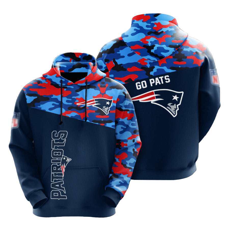 New England Patriots color camouflage hoodie… excellent graphics on both sides! Lightweight design