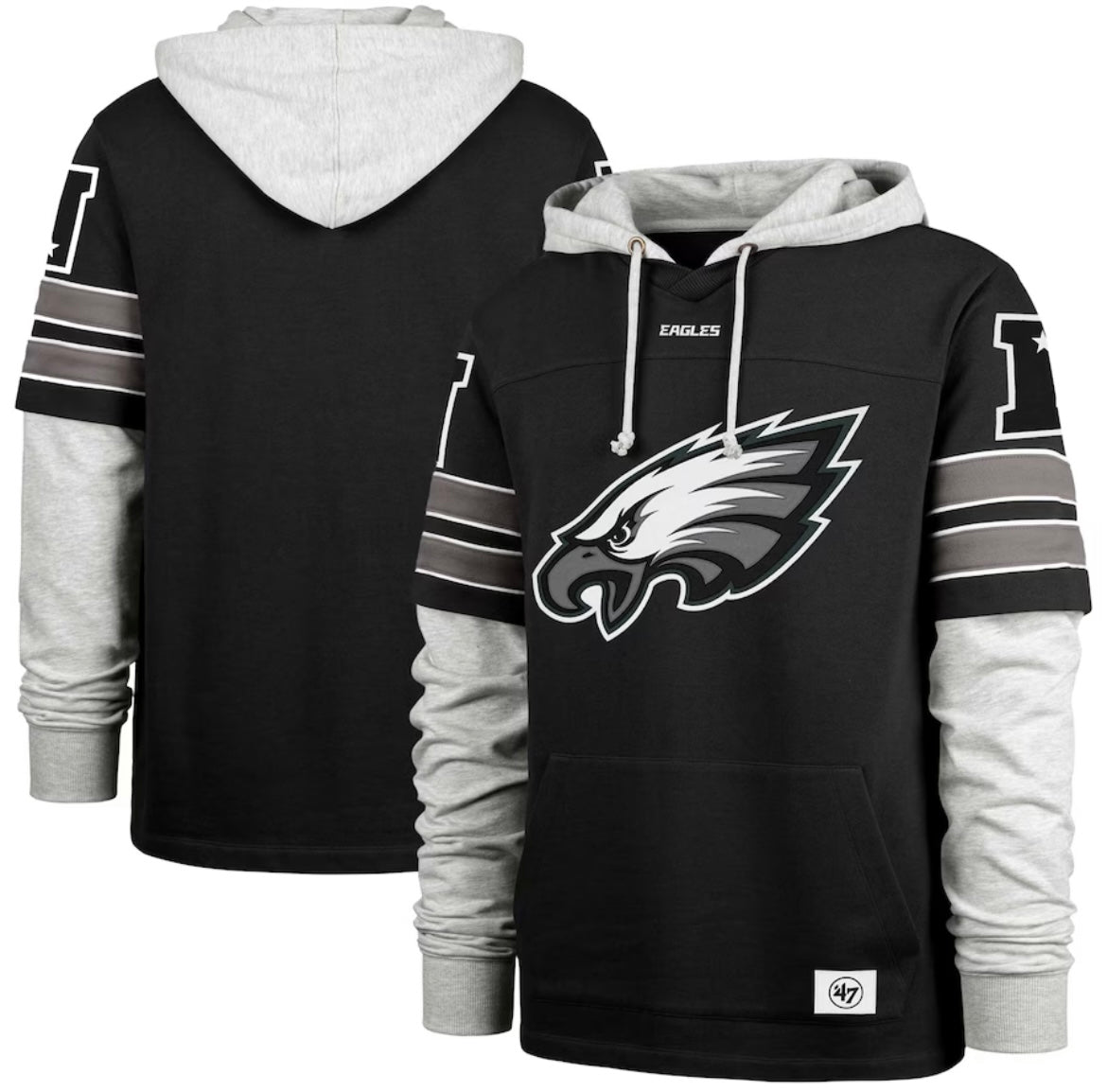 Philadelphia Eagles Hoodie… Very thick and premium quality… Made by 47 brand… Layer up in this soft and roomy fleece hoodie to shrug off the chill in cooler temps. Displaying proud graphics in squad colors, it pays tribute to your favorite team.