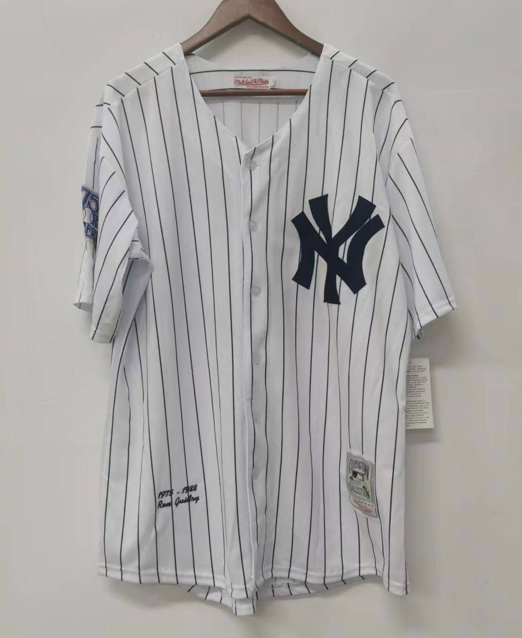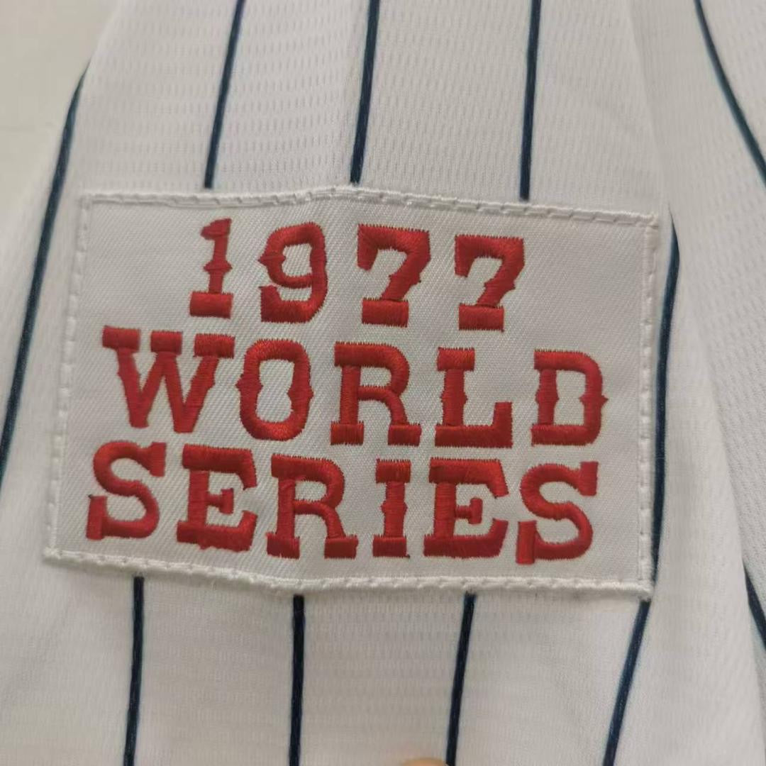 Ron Guidry New York Yankees Jersey white pinstripes … Made by Mitchell & Ness … 2 patches for the 1977 - 1978 World Series All letters and numbers are stitched … Men’s Sizes available: S/M/L/XL/2XL/3XL